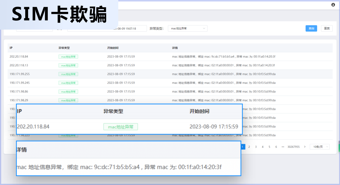 通过终端IP、MAC地址、状态、类别等维度展⽰状态信息。 -